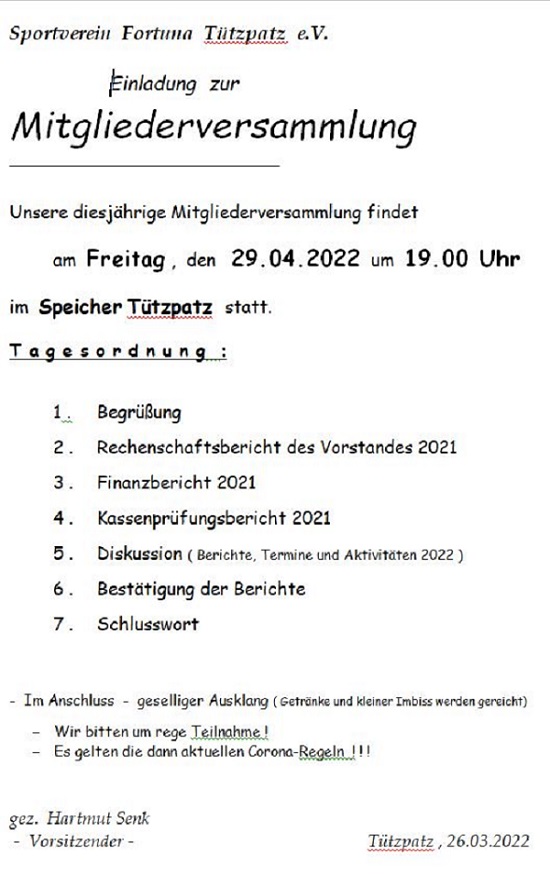 03.04.2022 - Einladung zur Mitgliederversammlung 2022